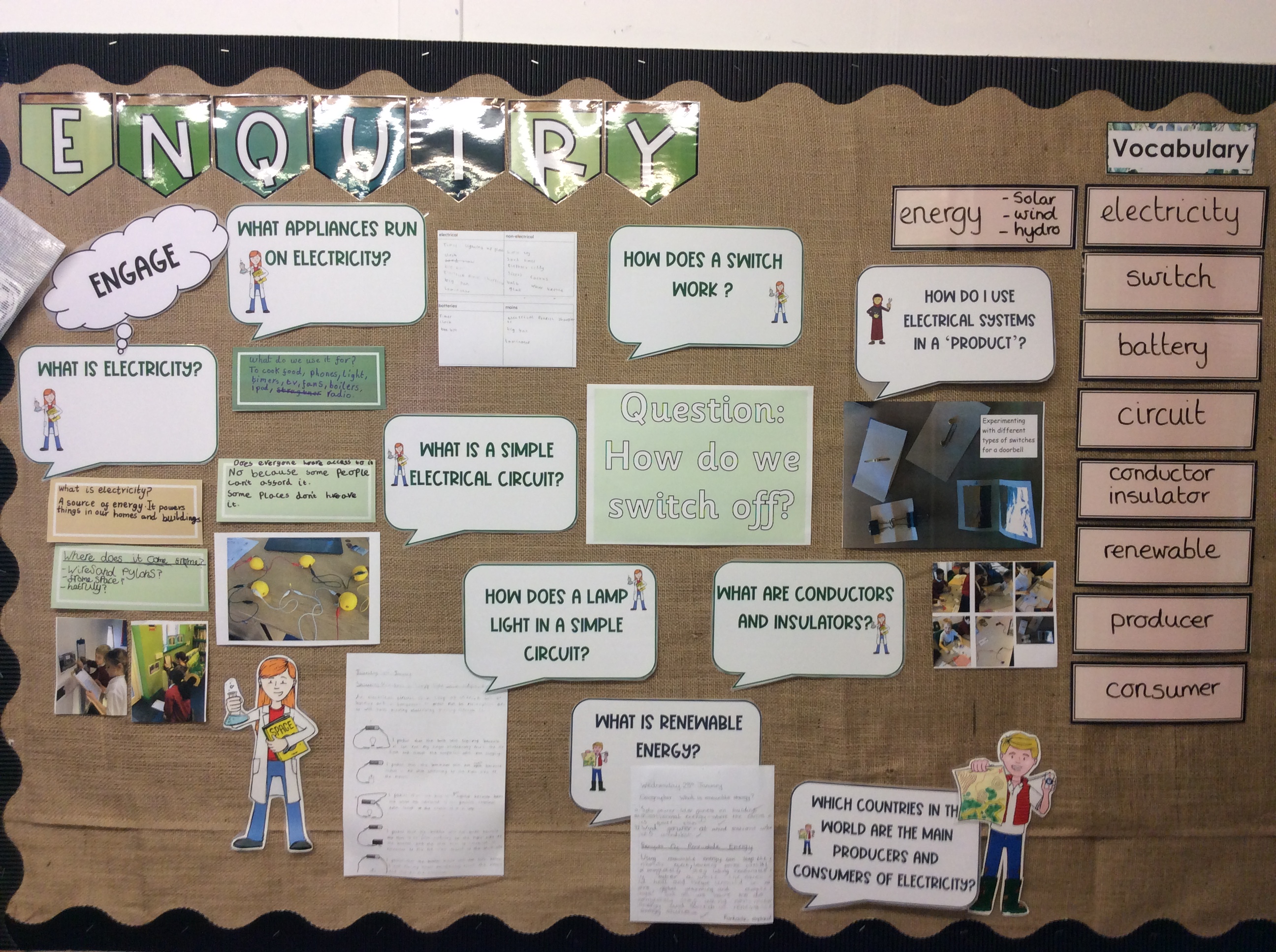 This term our enquiry is entitled, "How do we switch off?" We will be learning that electricity is energy that is used for a wide variety of applications and that it can be ‘made’ from fossil fuels and renewable sources. The enquiry aims to be both practical in nature as the children learn how to build simple circuits as well as looking at the broader environmental use of energy.